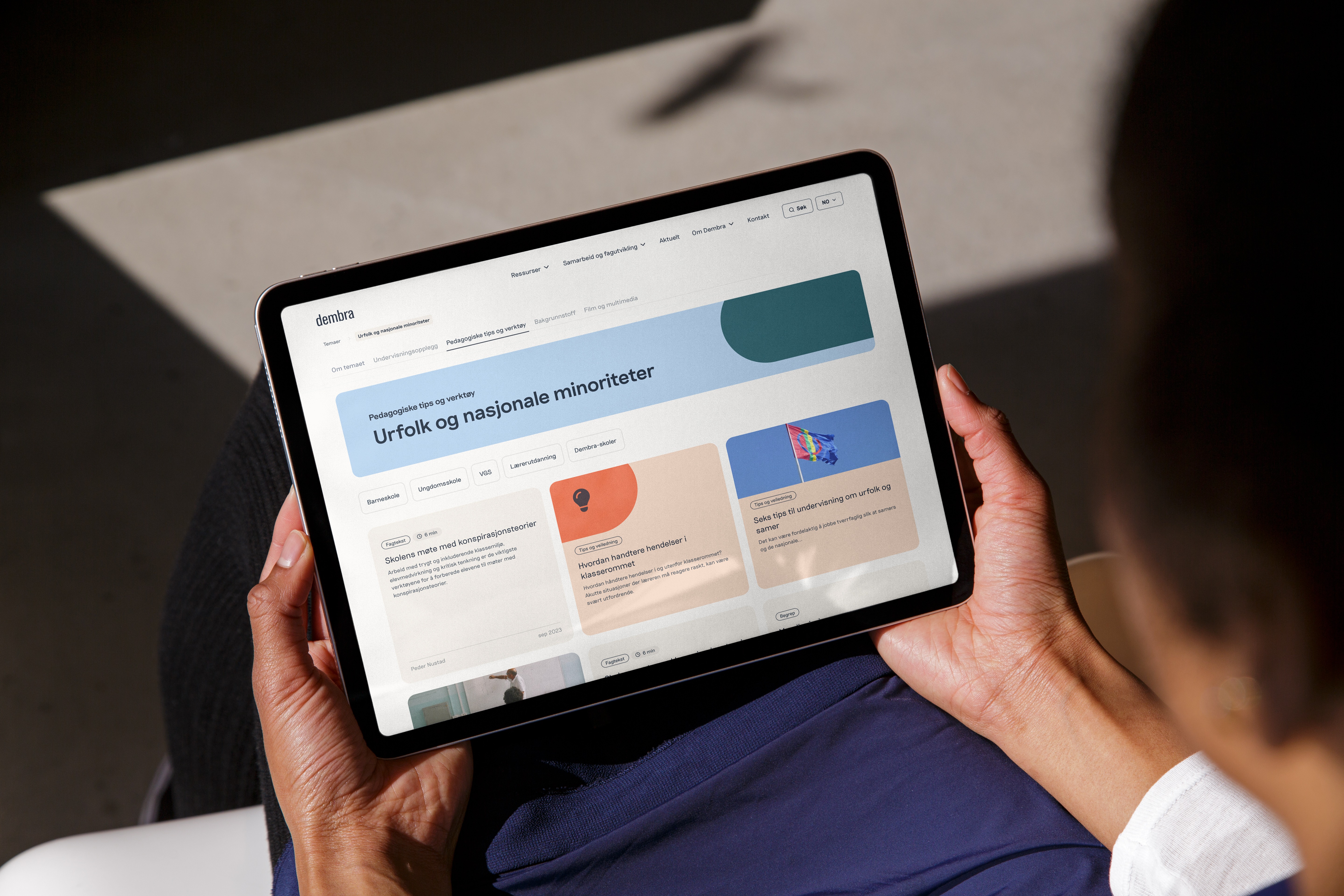 Fargene i profilen møtte ikke kravene til kontrast for universell utforming. Og selv om det visuelle uttrykket passet godt for barneskoleelever, var det hovedsakelig lærere og lærerstudenter som var målgruppen. Det var tross alt dem som skulle finne fram til og bruke Dembras tjenester. Det var på tide for designprofilen å vokse opp, uten at nettsiden skulle bli kjedelig eller byråkratisk.