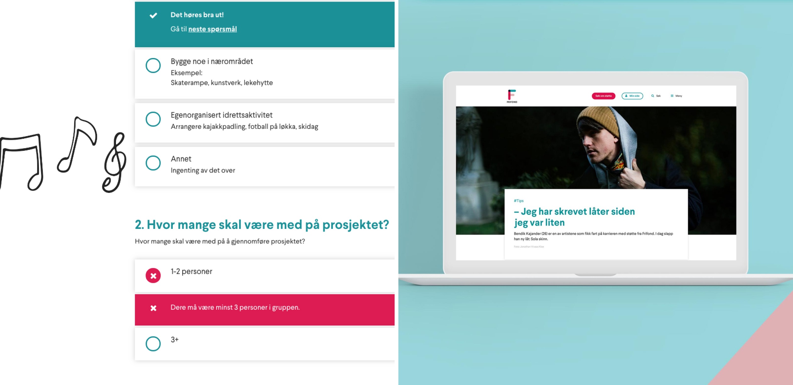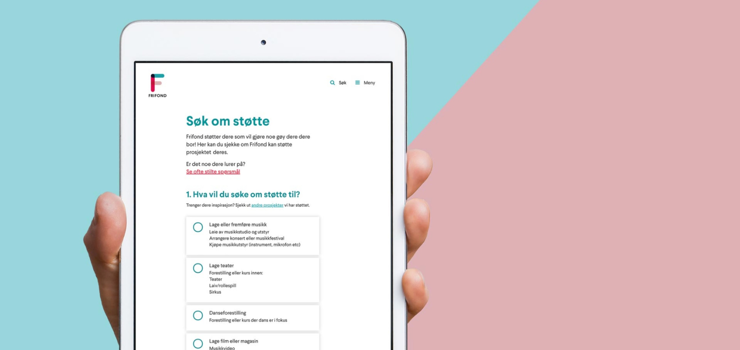 Rapportering og søknadsskjemaer kan skremme vekk de fleste. Frifond måtte derfor senke terskelen og gjøre selve søknadsprosessen mer innbydende. Løsningen vår ble å skape en vennlig og ungdommelig identitet som sier “dette klarer du helt fint!”.