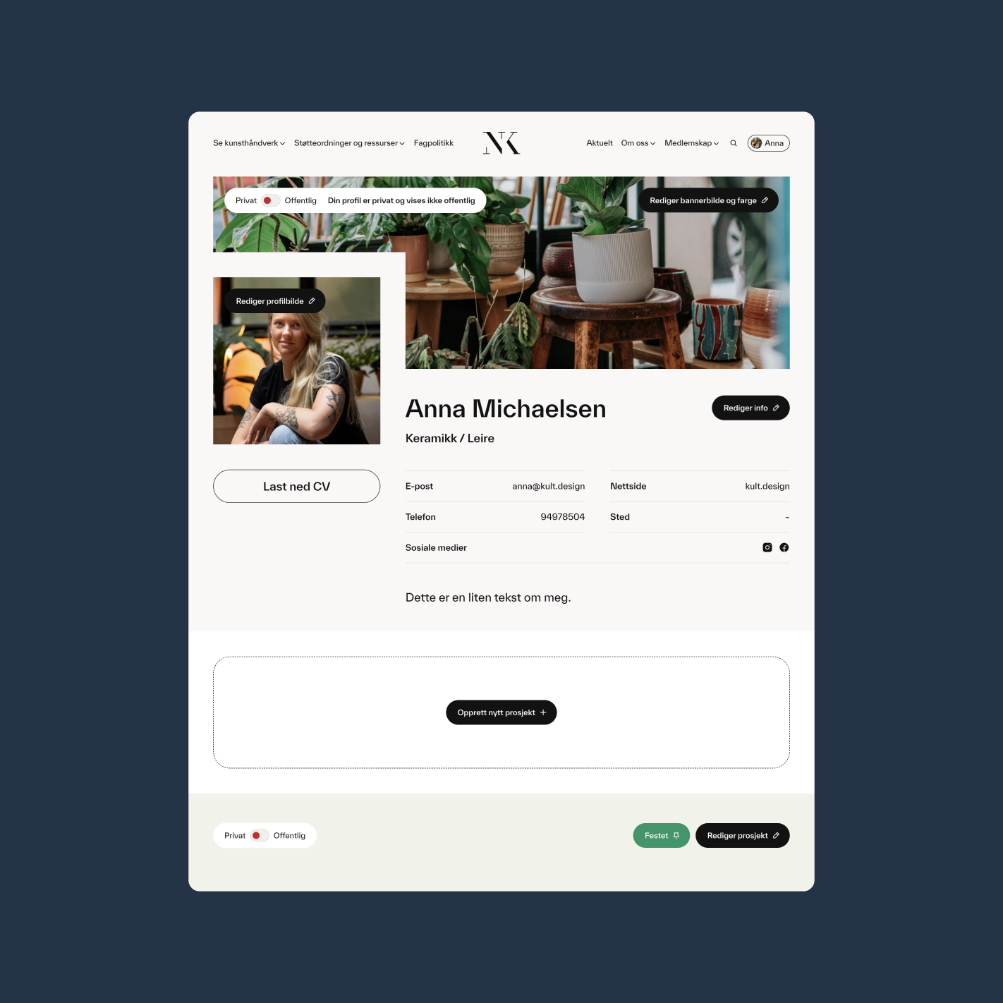 Da Norske Kunsthåndverkere skulle bytte plattform for sitt eksisterende nettsted, var det lett å velge Kult som samarbeidspartner. Hos Kult fikk vi god veiledning fra engasjerte ansatte som ikke bare satte seg inn i den eksisterende nettsiden vår, men også hjalp oss med å forbedre strukturen og designet og å aktivisere det eksisterende innholdet slik at det ble bedre synlig for brukerne.